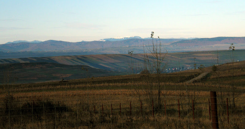 Fotografiile sunt făcute sâmbătă, 23 octombrie, în localitatea Cumpărătura. Munţii acoperiţi cu zăpadă se vedeau foarte clar chiar şi de la aproape o sută de kilometri.